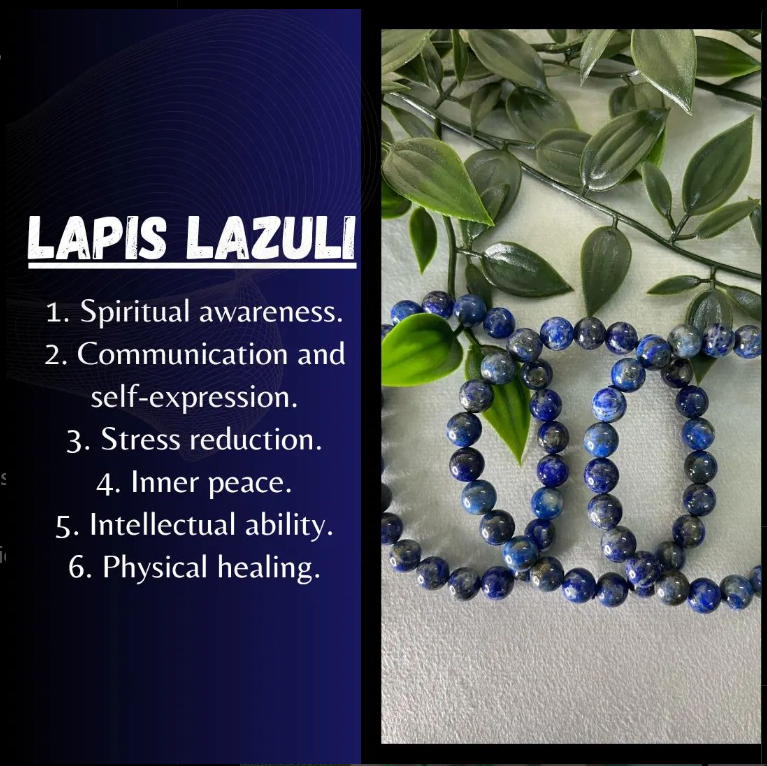 Wearing a lapiz lazuli bracelet is often associated with a range of metaphysical and healing benefits. Here are some of the key benefits attributed to Lapiz Lazuli bracelets: