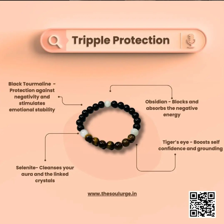 Wearing a tripple protection bracelet is often associated with a range of metaphysical and healing benefits.