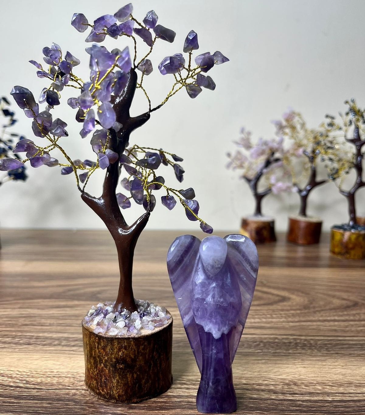 • Enhance your space with the enchanting beauty of our Crystal Stone Trees. Meticulously handcrafted, each tree features branches adorned with an array of vibrant, polished crystal stones, creating a stunning display of natural artistry. Perfect for home décor, meditation spaces, or as a thoughtful gift, these crystal trees symbolize growth, harmony, and positive energy. Bring a touch of nature’s elegance and spiritual serenity into your home with our exquisite Crystal Stone Trees.
