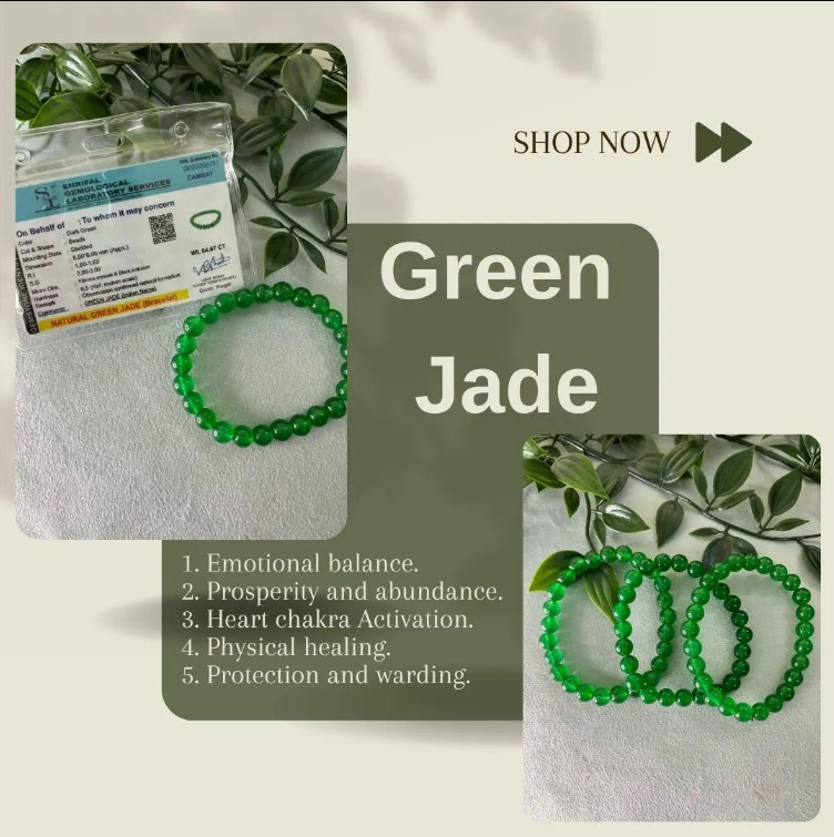 Wearing a green jade bracelet is often associated with a range of metaphysical and healing benefits. Here are some of the key benefits attributed to Green Jade bracelets: